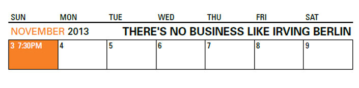 A Musical Concert celebrating one of the 20th Century's best Composers and Lyricists. Irving Berlin's songbook includes How Deep is the Ocean, I Love a Piano, Cheek to Cheek, Oh How I Hate To Get Up In The Morning, Blue Skies, What'll I Do and the anthem of all musical theatre – There's No Business Like Show Business.